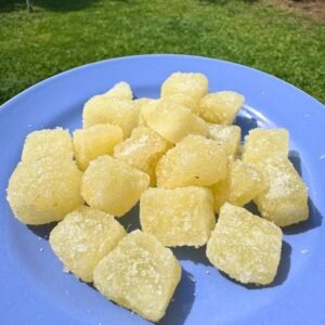 • Puhul Dosi features pumpkin pieces cooked in a sugar syrup until glistening and candied. The texture is a delightful balance of soft and slightly chewy pumpkin with a crystallized sugar coating.