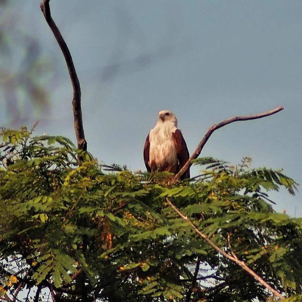 The Brahminy Kite (Haliastur indus), a majestic raptor in Sri Lanka, soars along coastlines and wetlands. Recognizable by its striking chestnut plumage, white head, and distinctive call, it hunts for fish and scavenges on carrion. Often seen in pairs, these kites exhibit remarkable aerial displays. Their presence contributes to the island’s coastal biodiversity, and conservation efforts focus on preserving these habitats, ensuring the continued existence of these impressive and opportunistic birds in Sri Lanka’s natural landscapes.